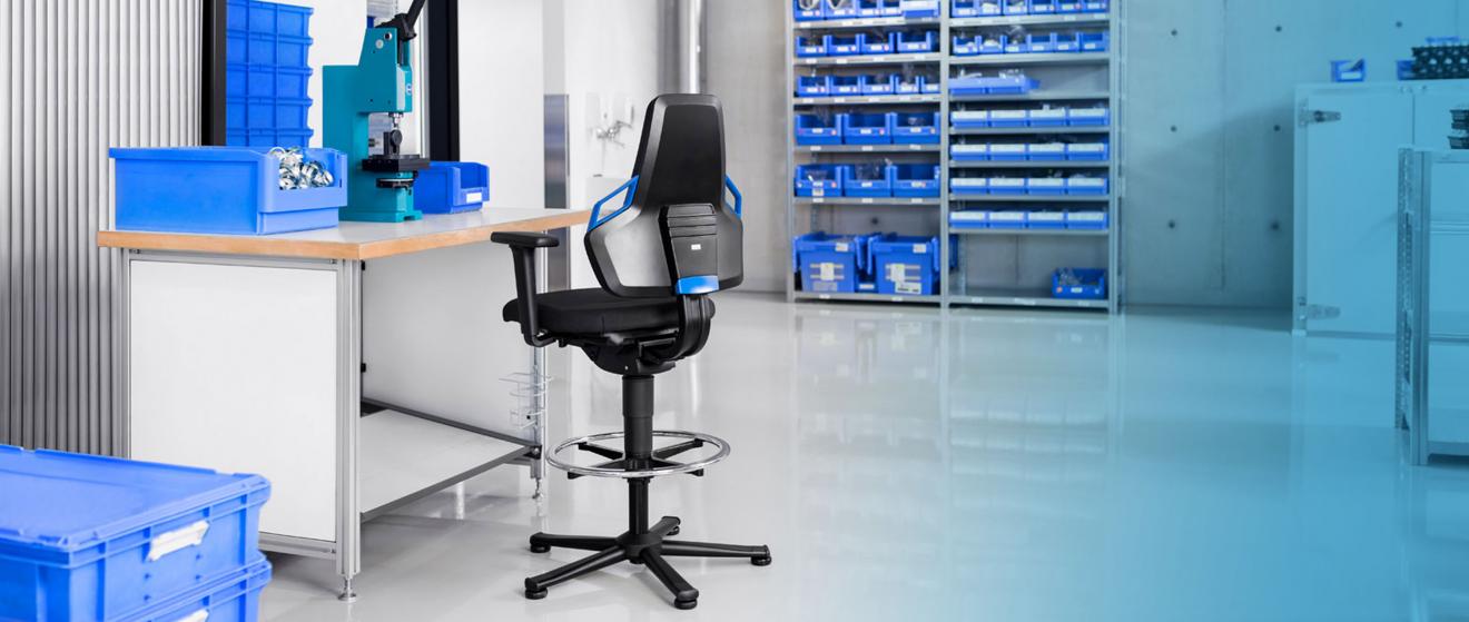 Ergonomisch und sicher. Der Arbeitsstuhl für Werkstätten, Montage, High-Tech-Industrie.